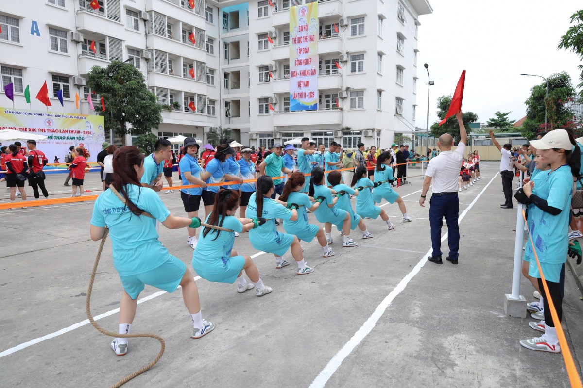Đoàn vận động viên của Công ty CP Vật tư – TKV tham gia thi đấu ở 2 nội dung gồm kéo co nam (hạng 560kg) và kéo co nữ (hạng 520kg). Trong 2 ngày thi đấu (16–17/4/2026), diễn ra tại Khu tập thể công nhân 5 tầng - Công ty Than Hòn Gai, các vận động viên đã thi đấu sôi nổi, thể hiện tinh thần đoàn kết, ý chí quyết tâm cao, hoàn thành tốt nội dung đăng ký.