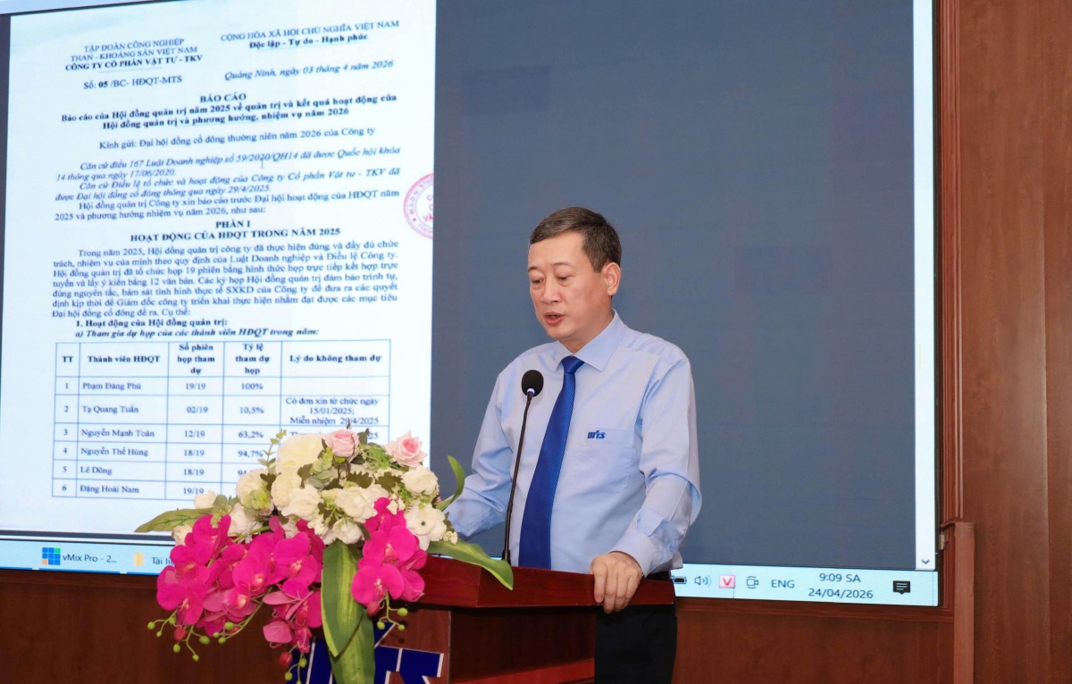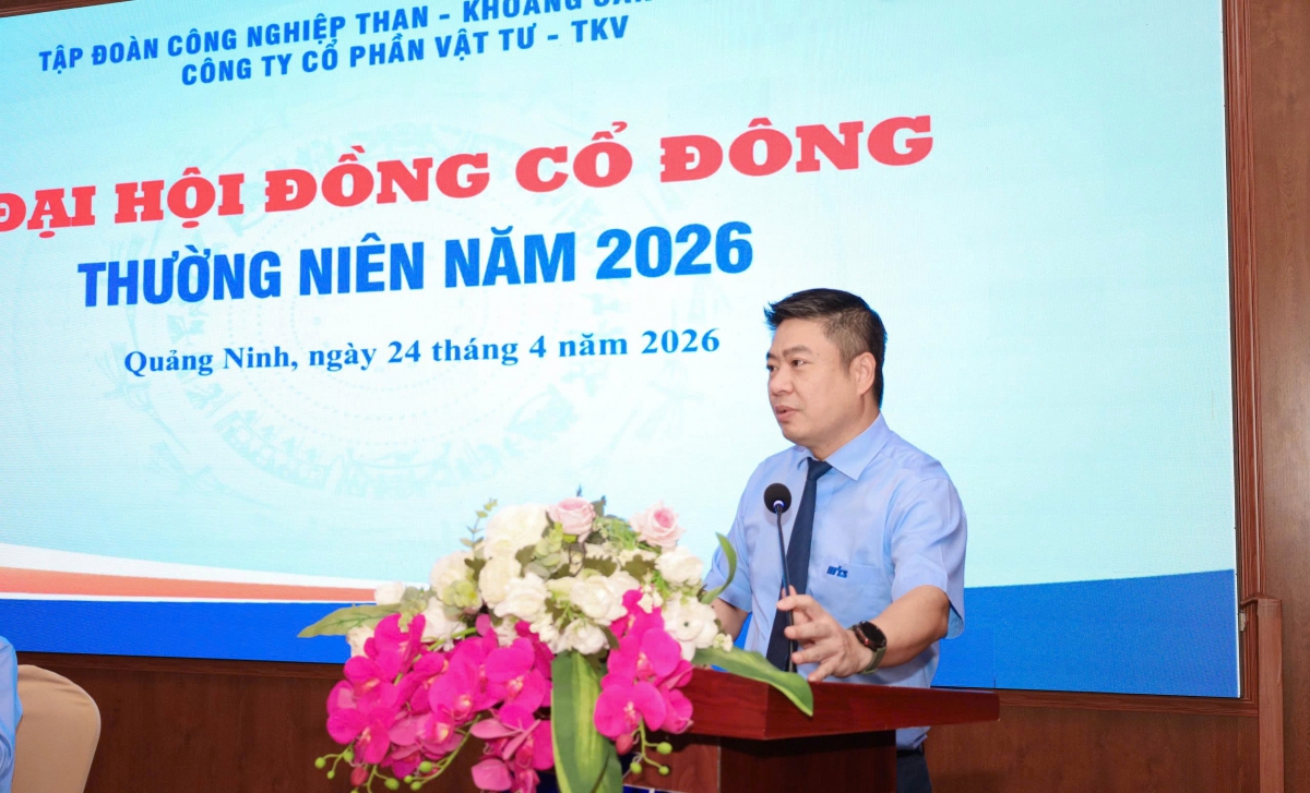Sáng ngày 24/4, Công ty Cổ phần Vật tư- TKV tổ chức Đại hội đồng cổ đông thường niên năm 2026, Ông Phạm Đăng Phú, Chủ tịch Hội đồng quản trị Công ty điều hành Đại hội.